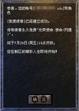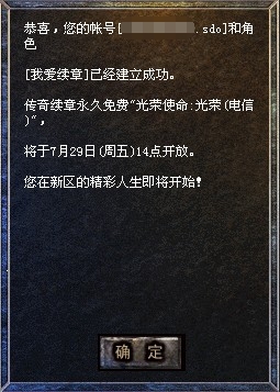 进入新区后,在账号密码输入界面可使用已注册好的盛大通行证账号登录,然后按照往常的步骤进行创建人物,角色创建成功后如下图: