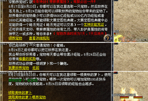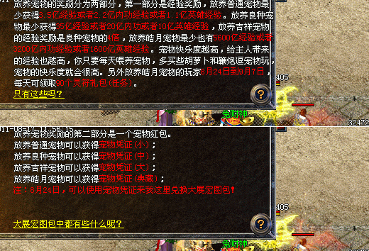 此次放养宠物的奖励分为两部分,第一部分是获得经验奖励,第二部分是获得宠物红包——大展宏图包。