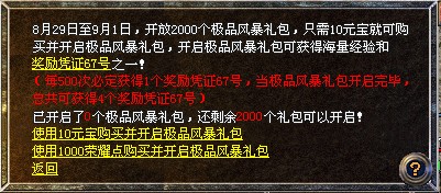 8月29日至9月1日期间,每人皆可享受2000次开启机会,每开启500次可额外获得奖励凭证67号一个!