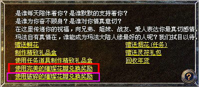 (如获得完美的璀璨花瓣,可至盟重人缘大使处兑换一个璀璨烟花)。