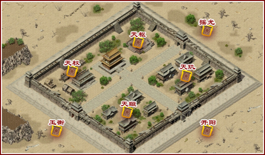 在这场空前激烈的跨服争夺战中,据点争夺绝对是获得取胜优势的先驱条件。天下第一战的沙巴克地图,共设有天枢、天权、天璇、天玑、玉衡、开阳、摇光七大据点。
