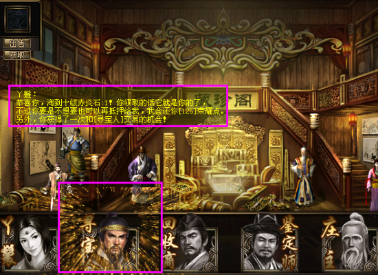 3、玩家在淘到宝物后,如果满意便可收于囊中,如不尽人意,可以将之抵押返还荣耀