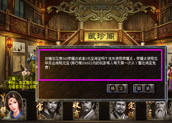 2)排行榜2000名以内的玩家,每人每天在丫鬟处第一次淘宝免费