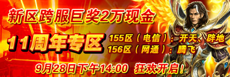 活动区服:11周年专区(155区电信)、11周年专区 (156区网通)