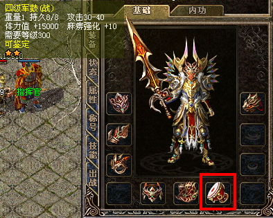 佩戴军鼓,三职业除了具备超高基础属性外,战士还可提升体力值,法师、道士可同时提升体力值、魔法值。