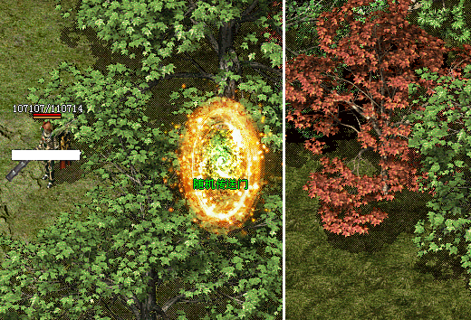 目的地神殿出发,越过黄土地进入林区,映入眼帘的是粉色的桃花、绿色的树叶,偶尔夹杂其间的红色枫叶,风景果然这边独好。慢着,瞧我发现了什么——随机传送门!金灿灿的光芒晃的人睁不开眼,勾着我想要踏进去看看。会被传送到哪里呢?想想今天的目标神殿,算了,下次再试吧,我咬牙转回头向着神殿的方向继续前进。